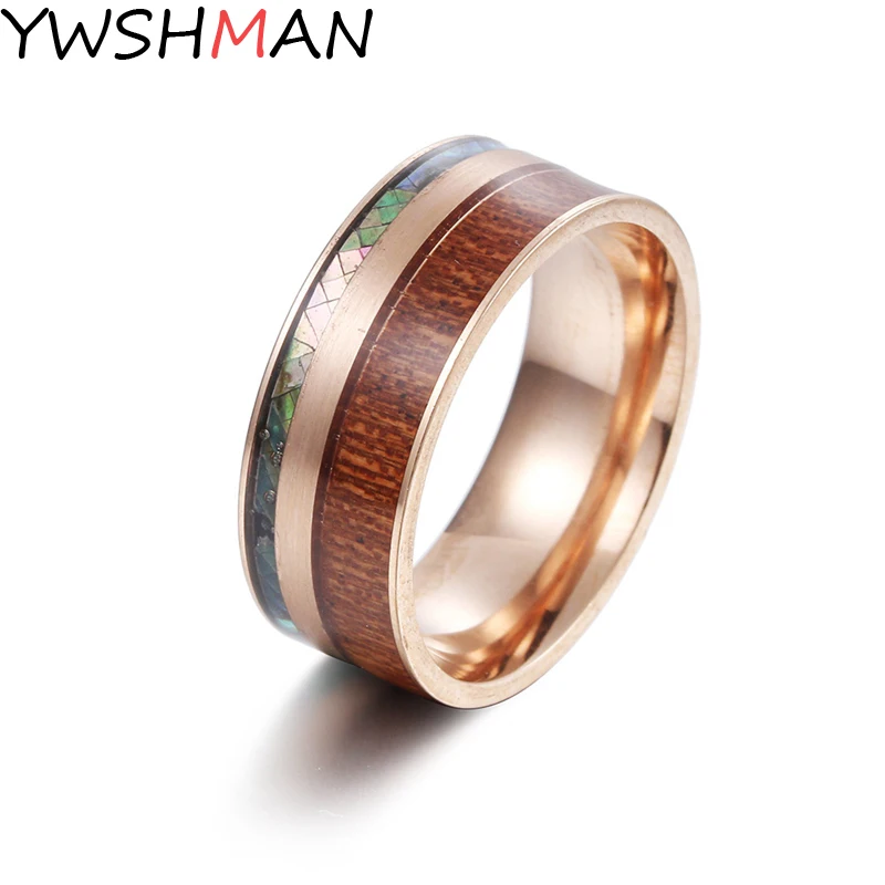 Модное мужское Золотое кольцо из нержавеющей стали, гавайский КоА, деревянное обручальное кольцо с инкрустацией в виде купола, мужское обручальное кольцо, ювелирные изделия