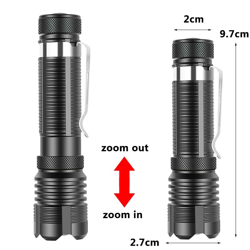 6. Срок службы лампы: 100000 часов7. Цвет Фонарика: черный8. Излучаемый Цвет: белый светильник9. Переключатель:Кнопочный переключатель10. Чехол Материал: Прочный авиационный алюминий11. Расстояние освещения: более 200 метров12: светодиодный срок службы: более 100000 часов