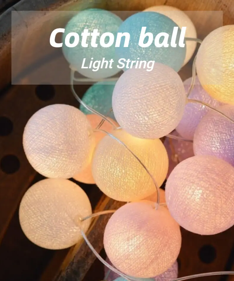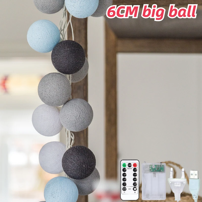 Гирлянда 6 см с хлопковыми шариками, лампа-лента для детской комнаты, спальни, украшение для дома, Рождества, гостиной, сада, уличная вечеринка