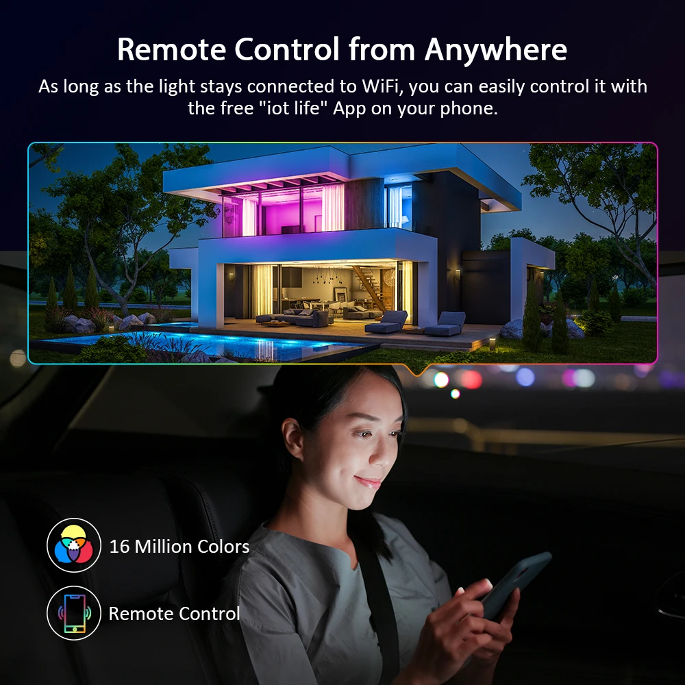 Настройка световых эффектов для светодиодных лент с режимом DIY в приложении.Выберите из 16 миллионов цветов и различных стилей, чтобы с легкостью изобьют вашу спальню, кухню и декор для гостиной.