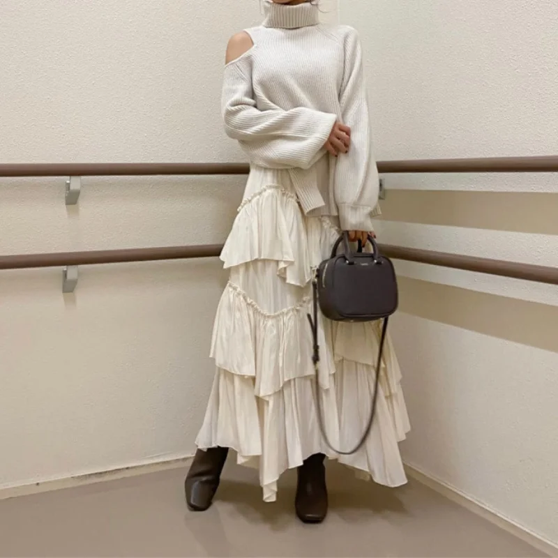 Женская плиссированная юбка в японском стиле, винтажная облегающая элегантная юбка составного кроя с оборками и высокой талией, универсальная Осенняя юбка