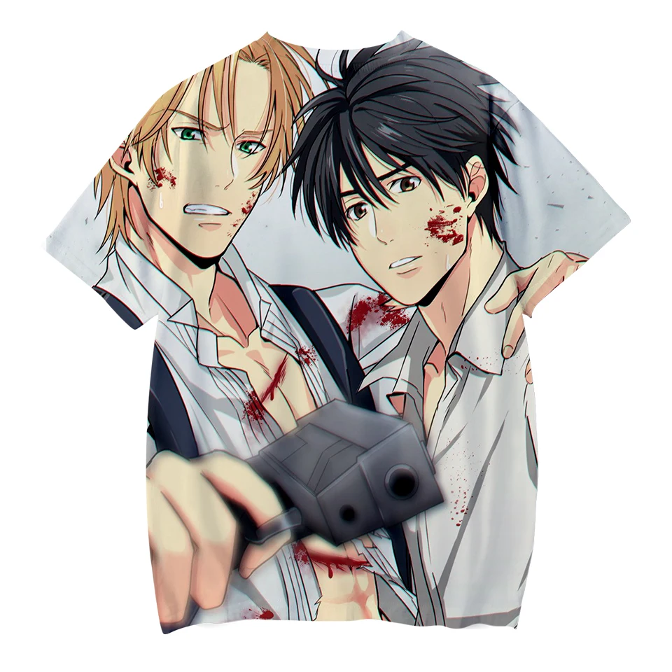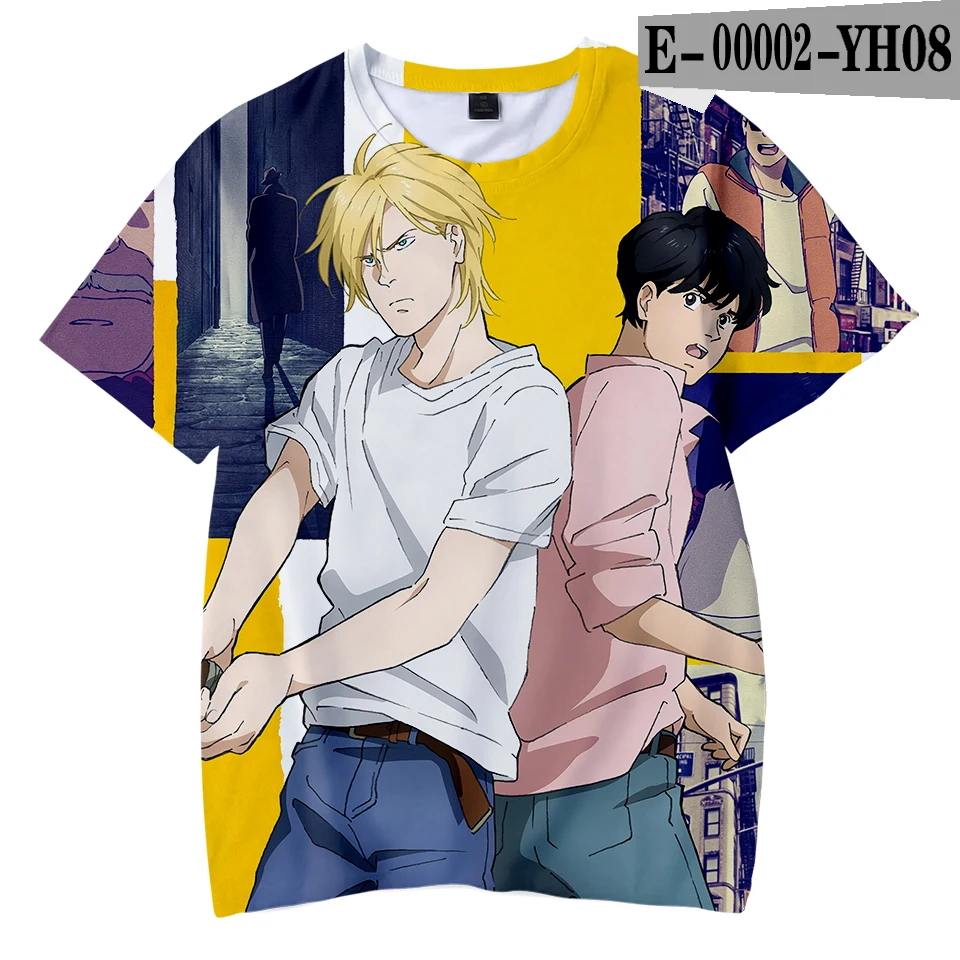 Новинка 2021, лидер продаж, модные крутые футболки с аниме принтом банановых рыбок, мужчин и женщин, Модная стильная футболка, уличная одежда, рубашки оверсайз