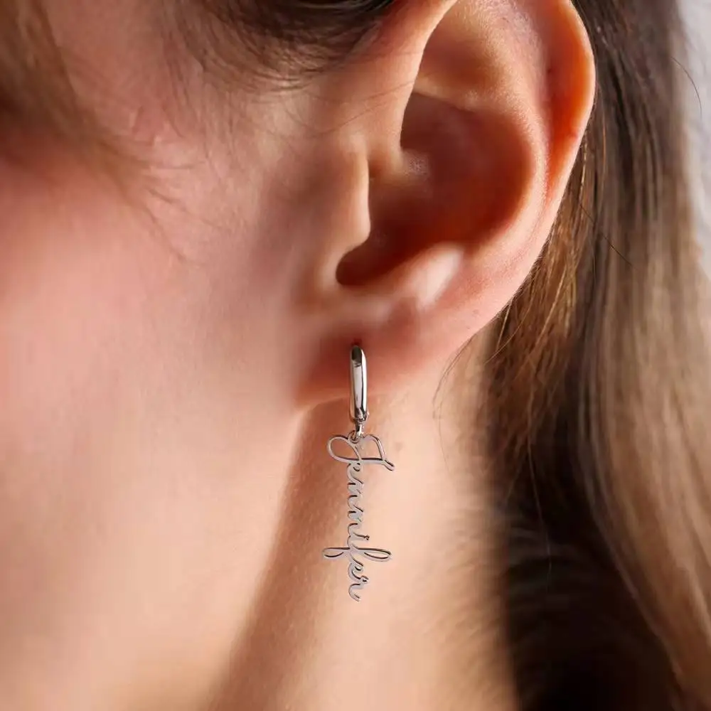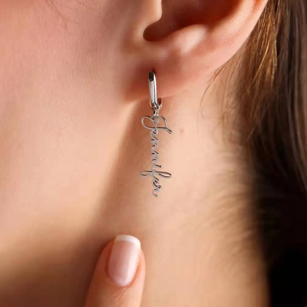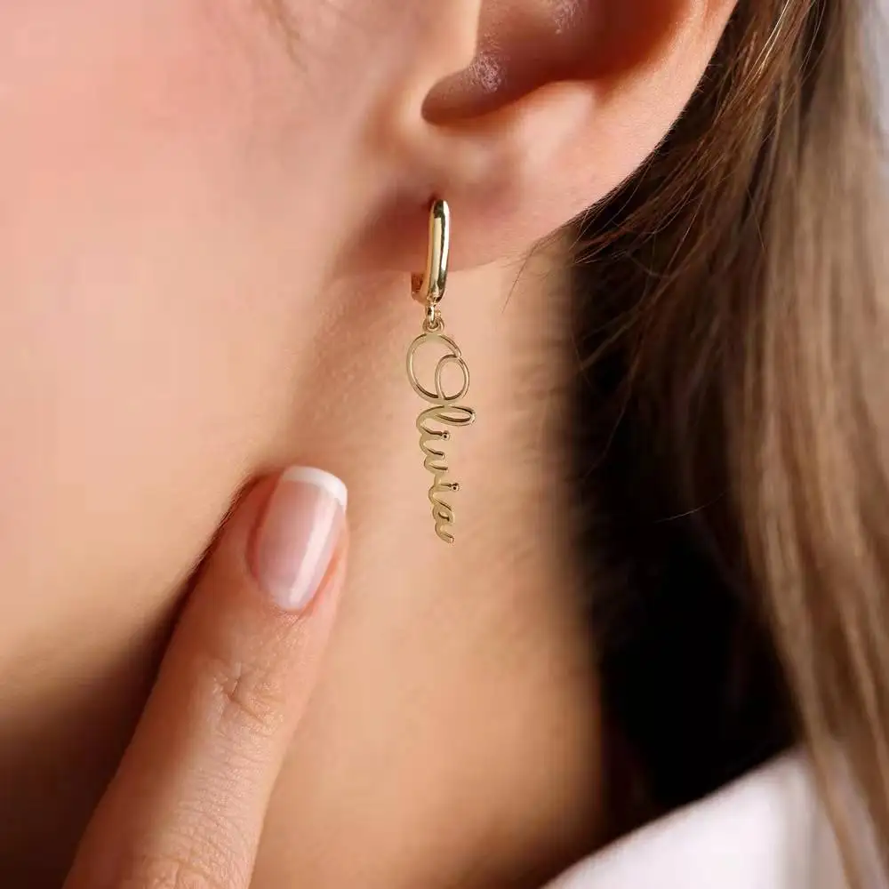 Название: пользовательские именные серьги из нержавеющей стали, персонализированные именные серьги, вертикальная подвеска, пряжка, ювелирные изделия для женщин, подарки на день рождения
