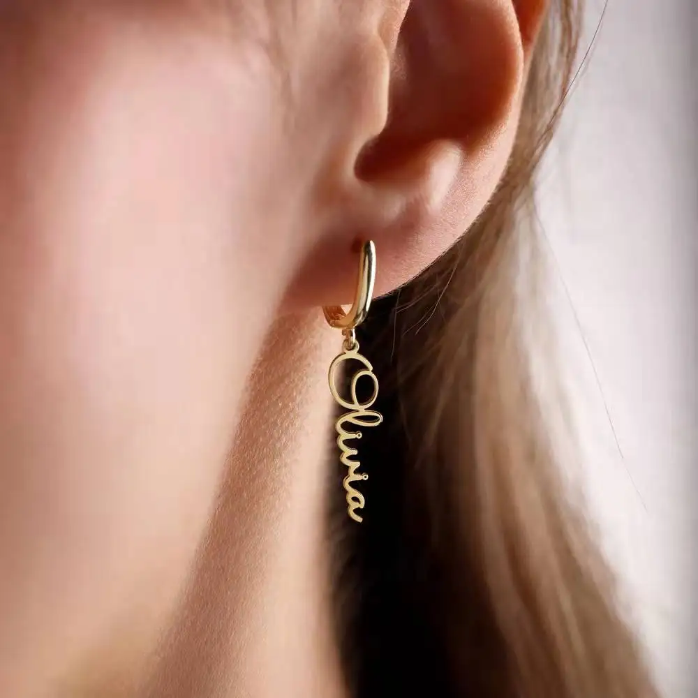 Персонализированные старые английские серьги с именем под заказ Вис...