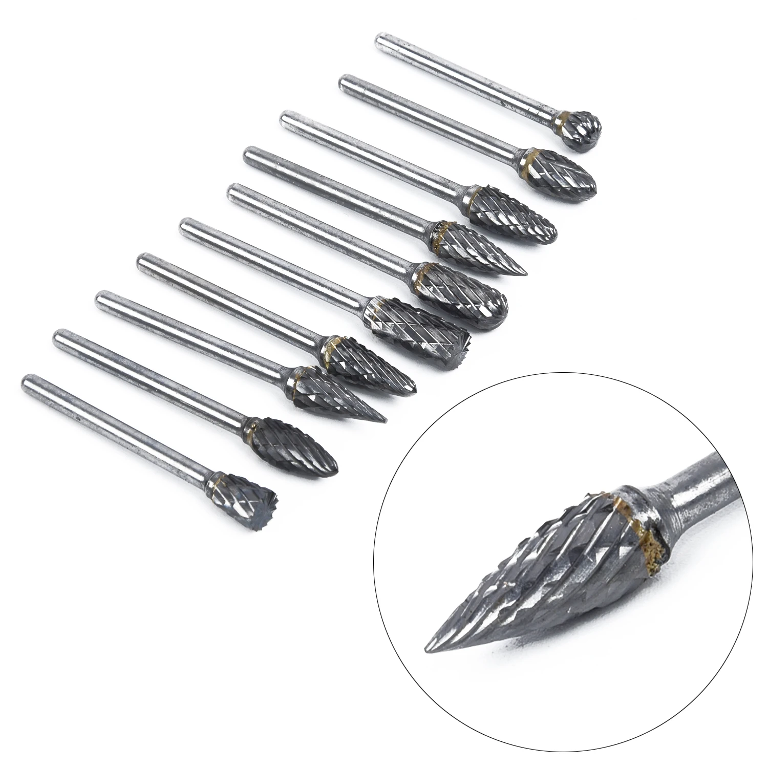10 шт. 3x6 мм хвостовик волочения карбида вольфрама фреза роторный инструмент заусенец двойной роторный дремель металла древесины электрический шлифовальный инструмент