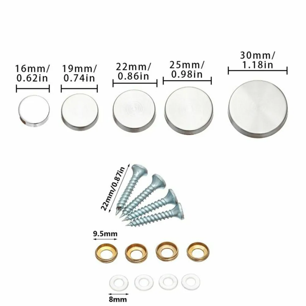Особенности:* 100% новые и высококачественные* Изготовлен из высококачественного материала, прочный и практичный в использовании* Конструкция из нержавеющей стали, устойчивая к ежедневной коррозии, царапинам и потускнению, обеспечивая долговечность и долговечность.* Широко используется в зеркалах, чайных столах, шкафах, стеклянных знаках, другой деревянной или стеклянной мебели.Характеристики:Материал: нержавеющая стальОтделка: матоваяДиаметр: 16/19/22/25/30 ммДлина винта: 23 ммПосылка:8 x винтов для зеркала (включая аксессуары)Примечание:1. Реальный цвет товара может быть s светильник ly отличаться от изображений, размещенных на веб-сайте, по причине многих факторов, таких как яркость вашего монитора и светильник яркость.2. Возможны незначительные отклонения в измерениях вручную.
