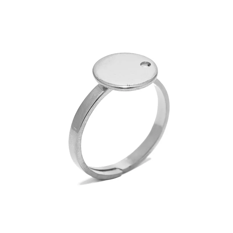 Круглые стальные Регулируемые кольца для пальцев компоненты с отверстием лоток плоский 10 мм основание кольца пустые ювелирные изделия для изготовления колец