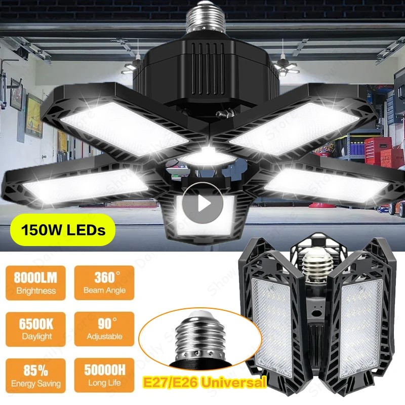 Регулируемая светодиодсветильник лампа для гаража, 150 Вт, E27E26, лм