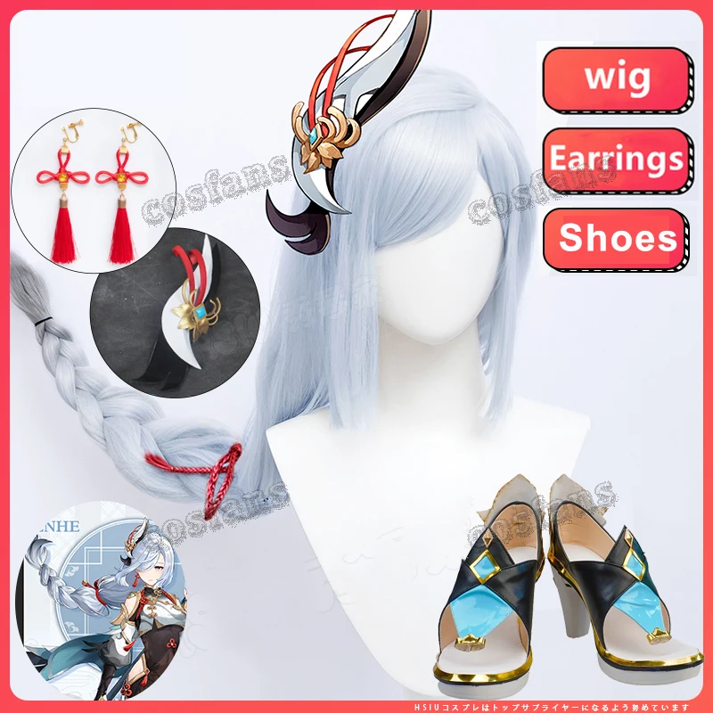 Genshin Impact Shenhe парик для косплея синий Длинные косички белого цвета Головные уборы термостойкие синтетические волосы Shenhe сапоги аксессуары