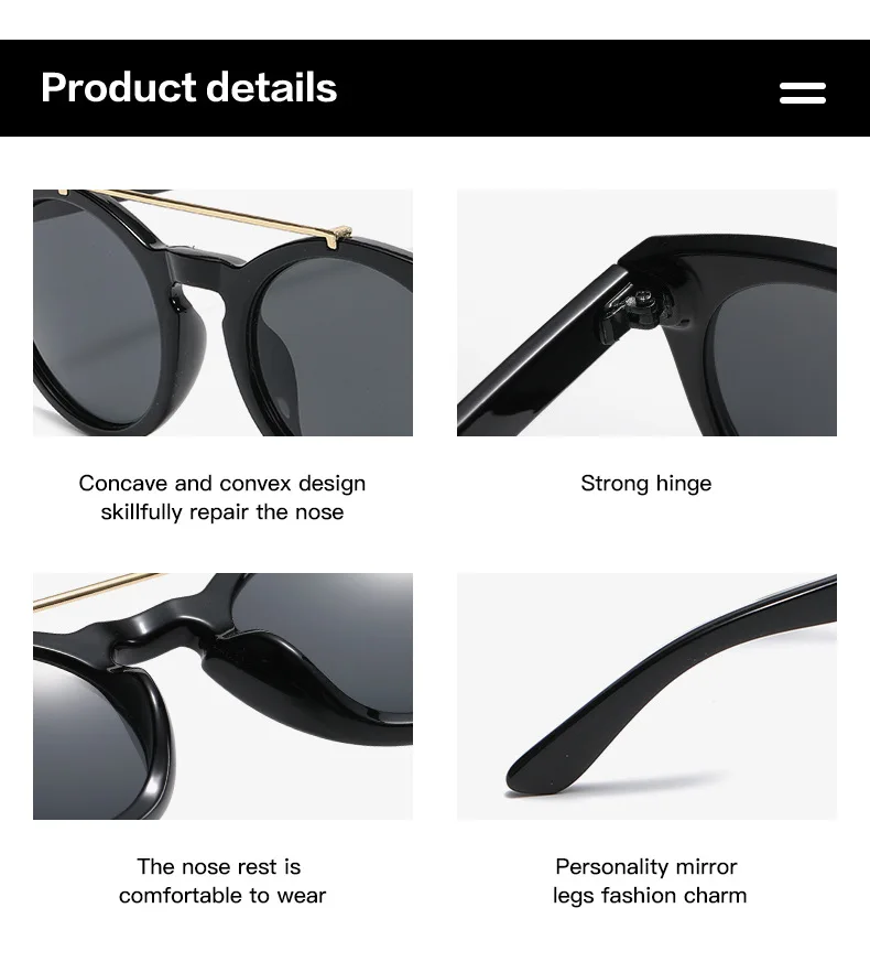 Очки солнцезащитные круглые с двойной перемычкой, UV400