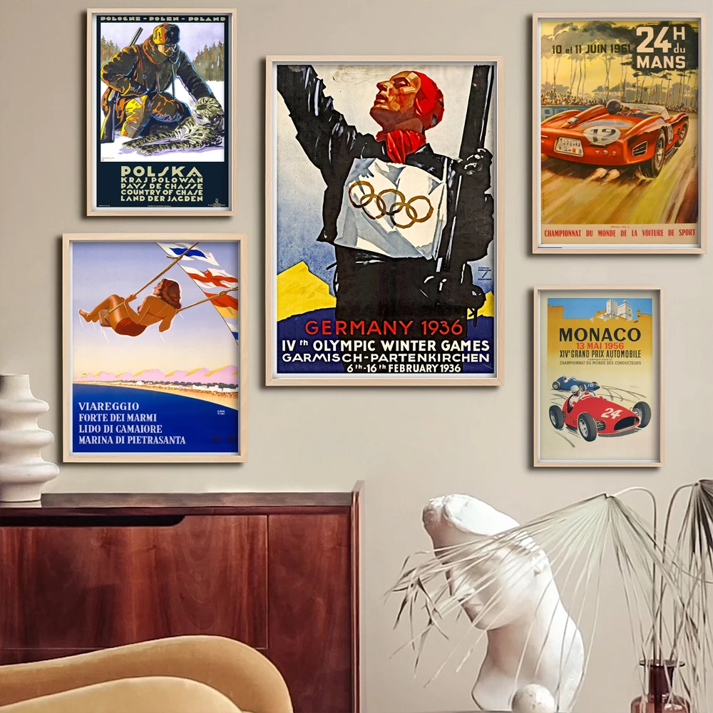 Художественный постер для спортивных игр и путешествий, винтажный постер с принтом лыж, Постер H201 для гостиной, домашний декор