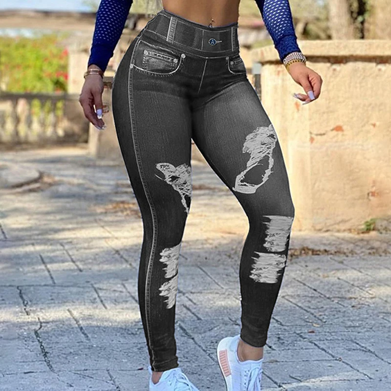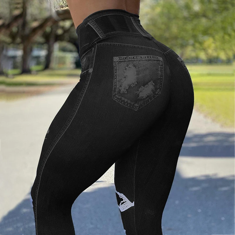 Особенности:Посылка включает в себя: Женские Штаны Для ЙогиРазмер: S-2XLМатериал: полиэстерТип: твердыйЖенские леггинсы 2021 модные искусственные лосины из джинсовой ткани, сексуальные длинные леггинсы с карманами и принтом, Осенние повседневные штаны для йоги.