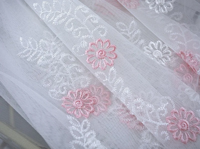 Белые вышитые прозрачные Занавески для гостиной, спальни, розовые ц...