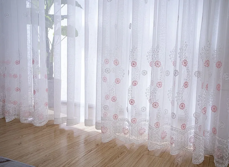Вышитые прозрачные шторы для гостиной, спальни, занавески из розово...