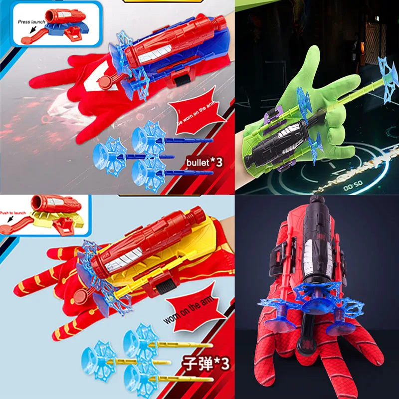 Фигурки Marvel, аниме, перчатка Человека-паука, пусковая установка, набор игрушек, пусковая установка для героя, запястье, ПВХ, косплей, Халк, Железный человек, модель, мягкая пуля, подарок для мальчика