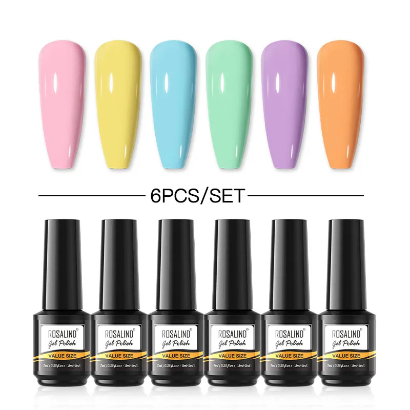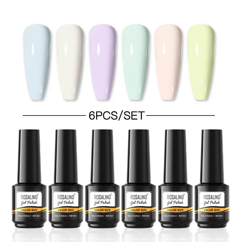 ROSALIND 6 шт.набор гель-лаков для ногтей, чистый цвет, набор для ногтей, Полупостоянный Набор для дизайна ногтей, Базовое покрытие, УФ-светодиодный набор гель-лаков