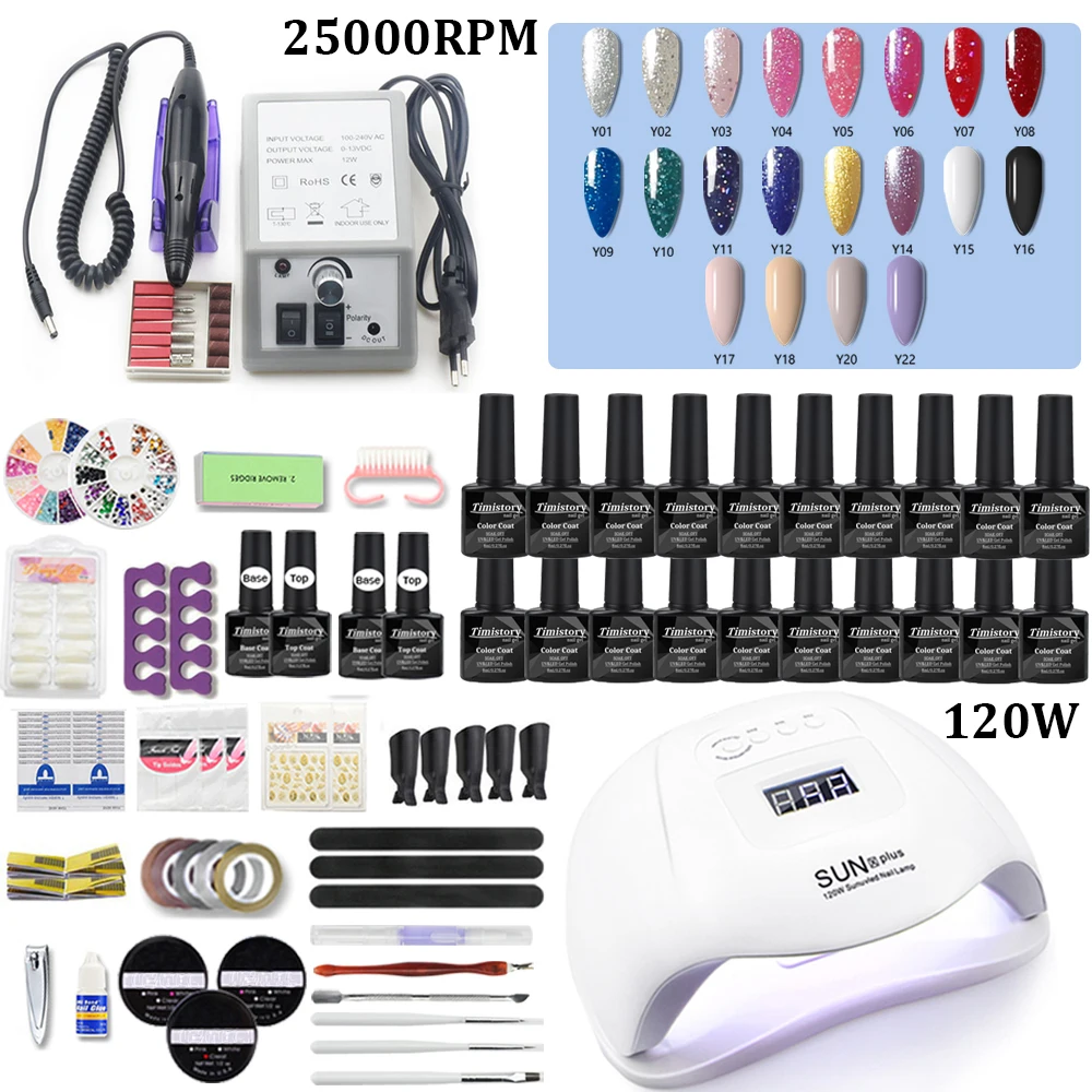 20 шт. Набор лаков для ногтей с маникюрной дрелью и УФ светодиодный набор инструментов для маникюра