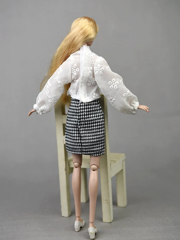 Юбка-рубашка с пышными рукавами гусиные лапки, 16, Одежда для куклы...