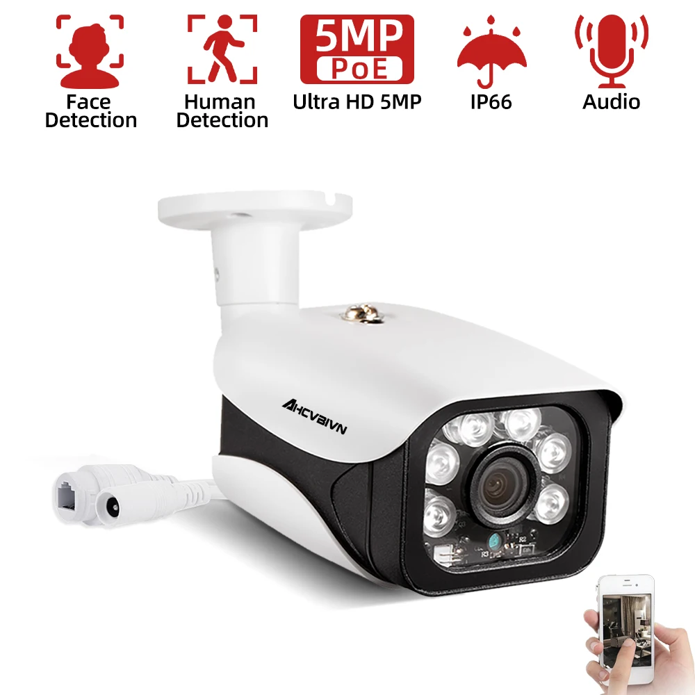 AHCVBIVN 5Mp Ip камера Poe Ai распознавание лица Cctv Камера Безопасности s H.265 наружная аудио запись видео наблюдение для Nvr системы