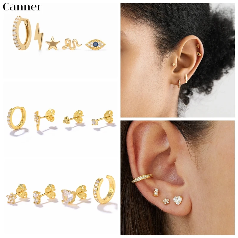 CANNER 345 шт.комплект, маленькие серьги-гвоздики с фианитом для пи...