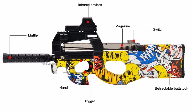 Игрушечный пистолет P90, Штурмовое снайперское оружие, водяные пули...