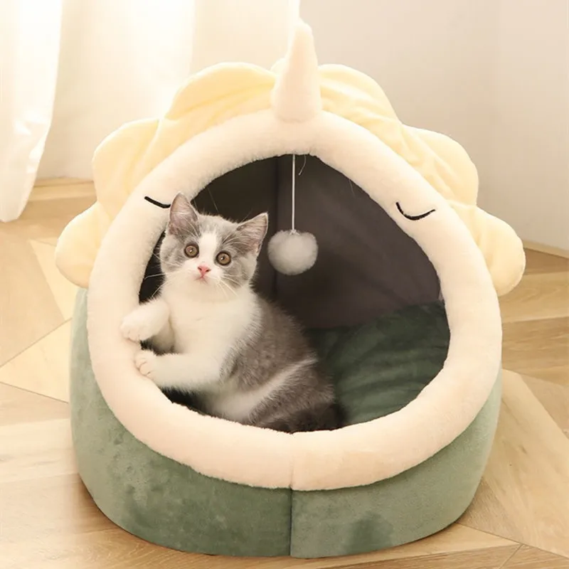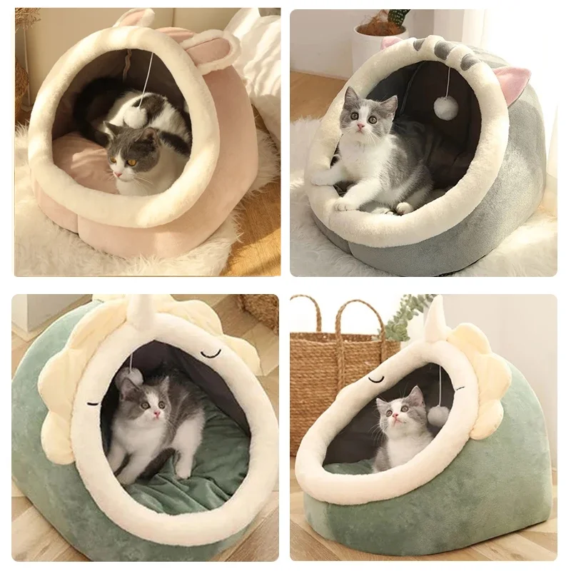 Съемный кошачий домик, зимняя теплая кровать для кошек, набитая полипропиленовым хлопком, для домашних животных, кровати и коврики с нескользящей подошвой