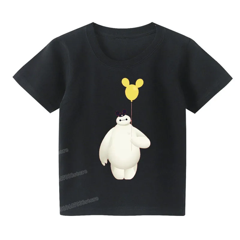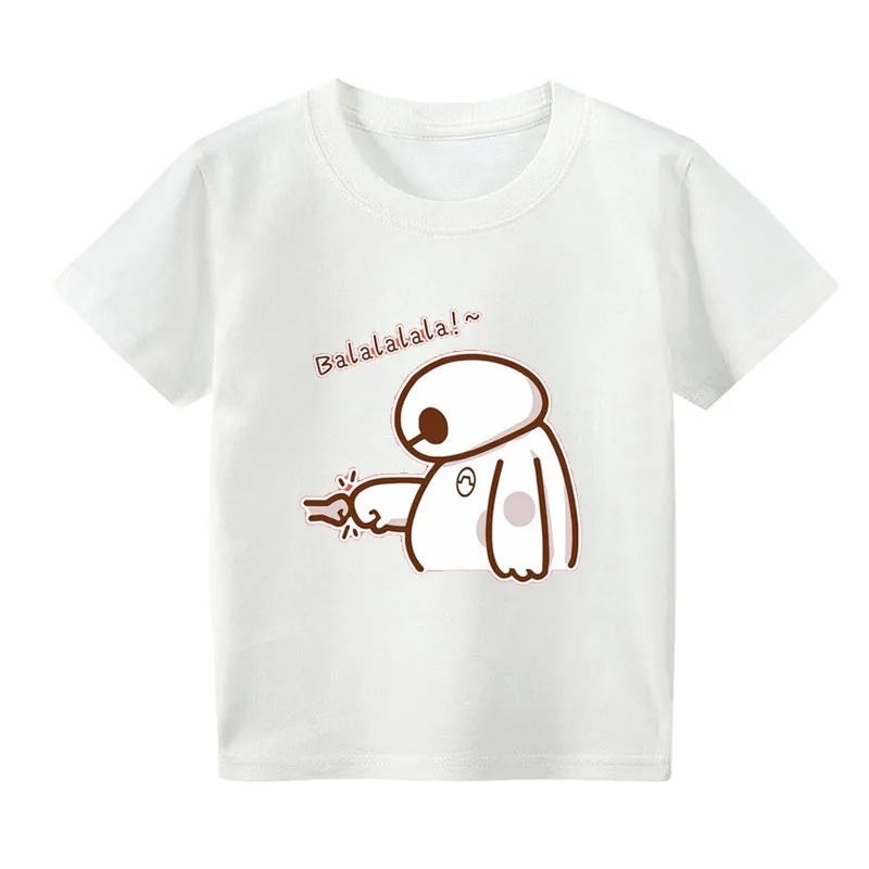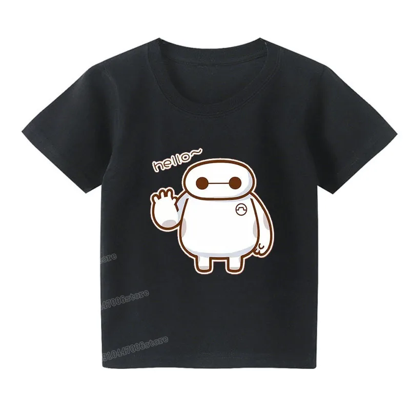 Футболка Baymax для детей, летняя одежда, одежда для больших героев 6, осенняя одежда, милые топы с коротким рукавом для маленьких девочек и мальчиков, хлопковые топы с мультяшным аниме принтом