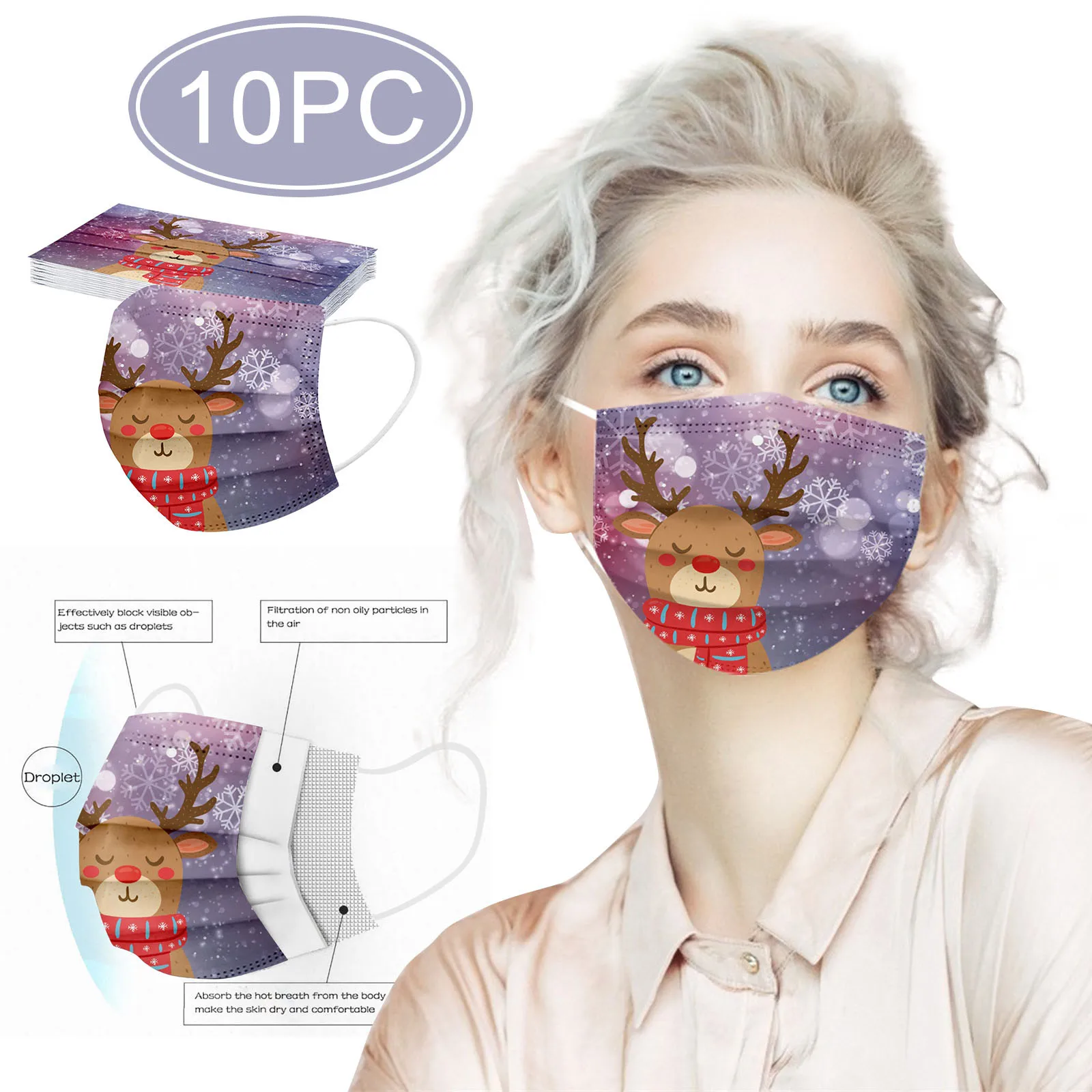 10 шт., одноразовые маски для взрослых, Рождественская Маска для ли...