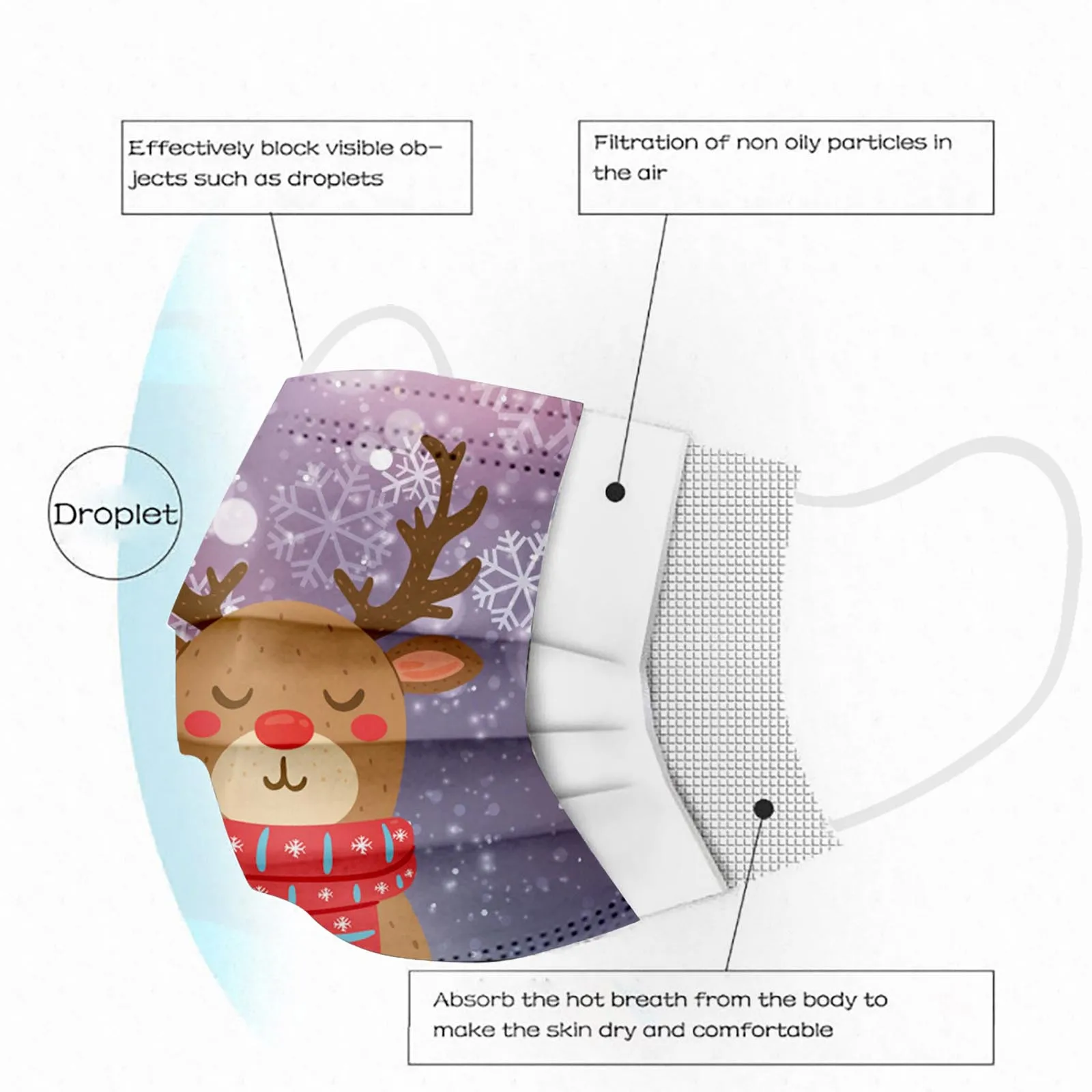 50 шт., одноразовые маски для лица для взрослых и женщин, с новогод...