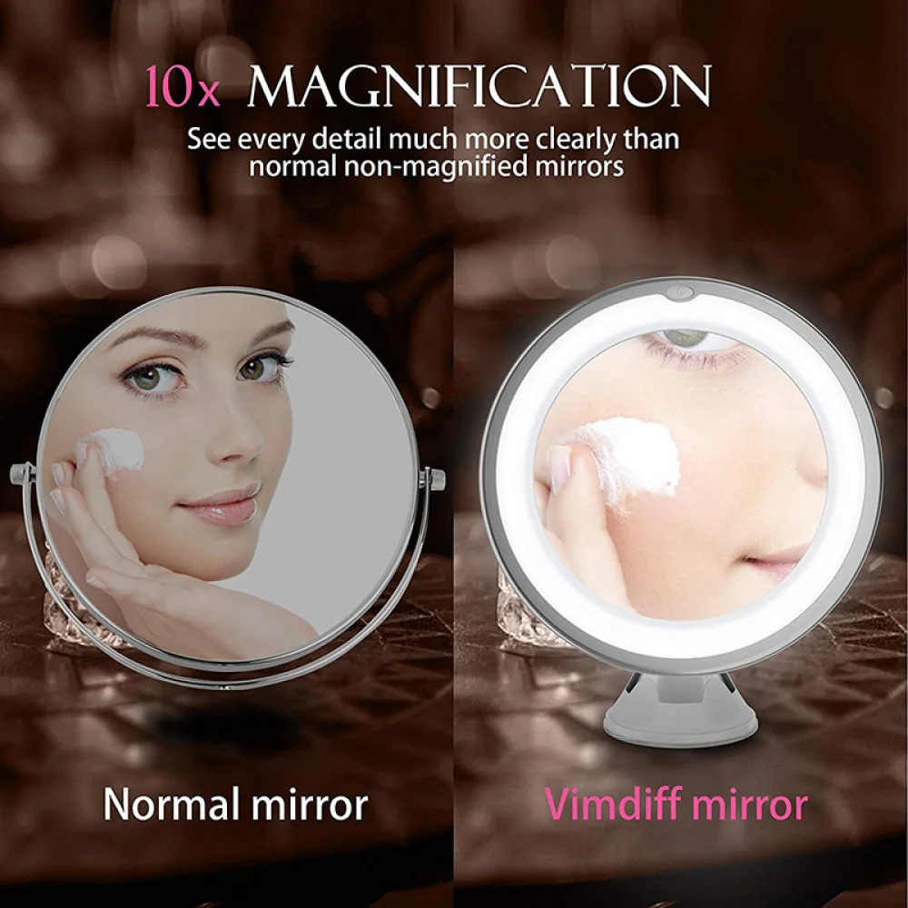 Зеркало для макияжа со светодиодной подсветкой, увеличительное зеркало с чашкой на присоске, косметическое зеркало с 10 светодиодами