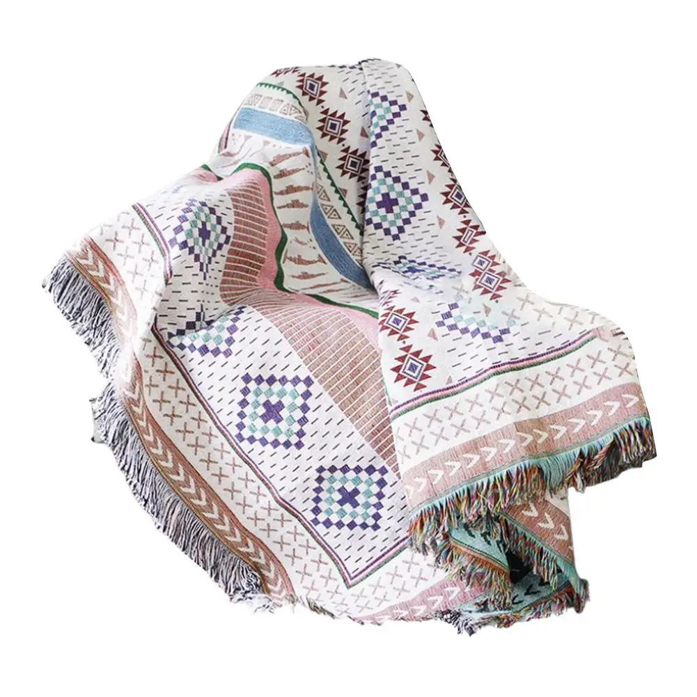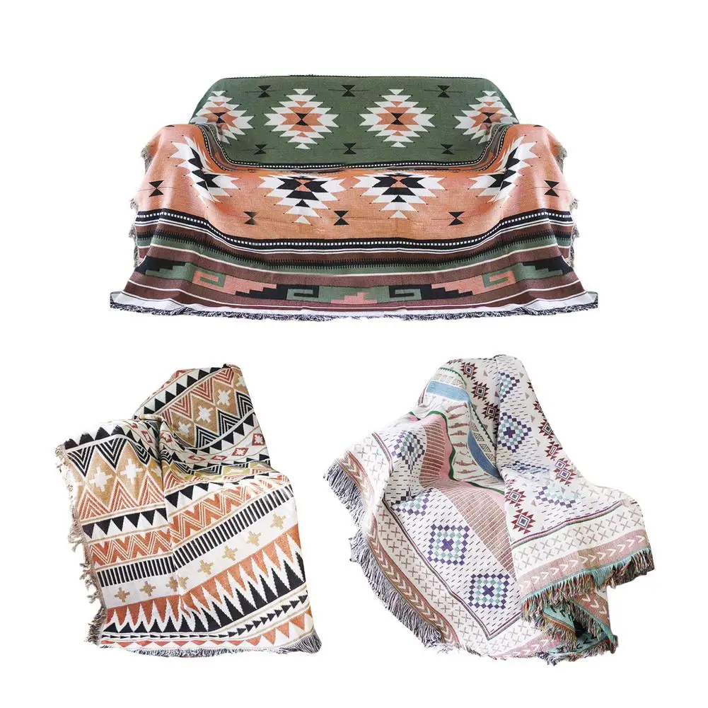 Плед в стиле бохо 90 см, вязаное одеяло с кисточками для дивана, чехол для дивана с геометрическим рисунком, красочное декоративное покрывало, чехол для дивана