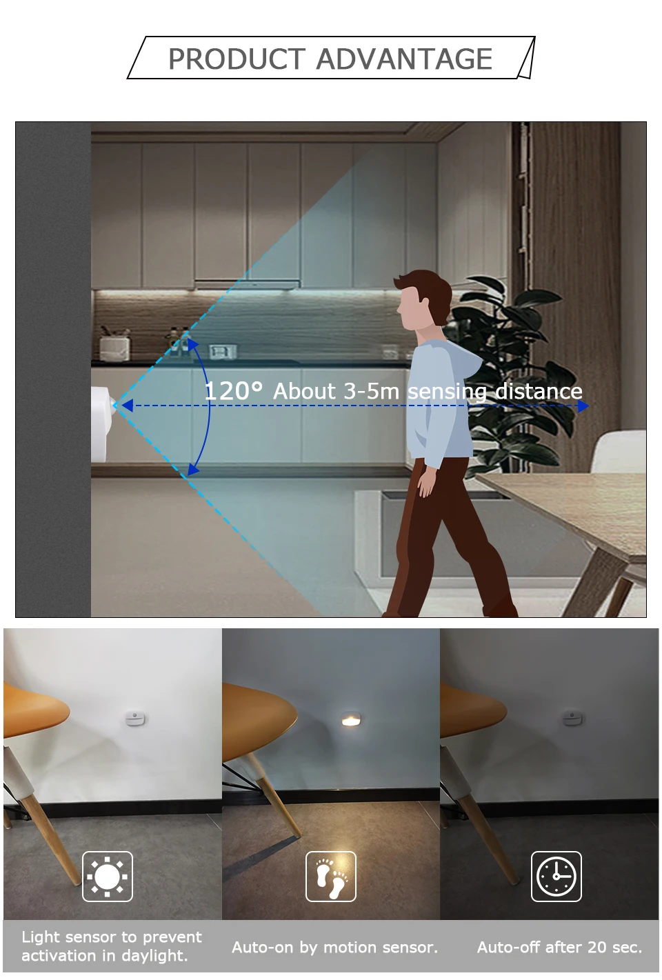 Ночсветильник с датчиком движения светильник 220 В, на батарейках