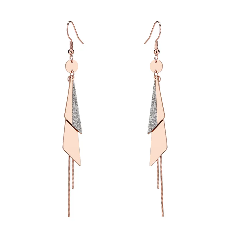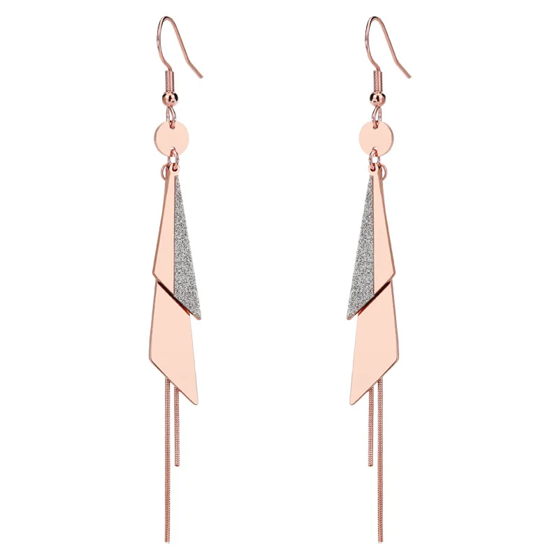 Женские цепочки из нержавеющей стали цвета розового золота, висячие серьги-Крючки с кисточками, треугольные Висячие серьги-кольца, зажимы, ювелирные изделия, подарки