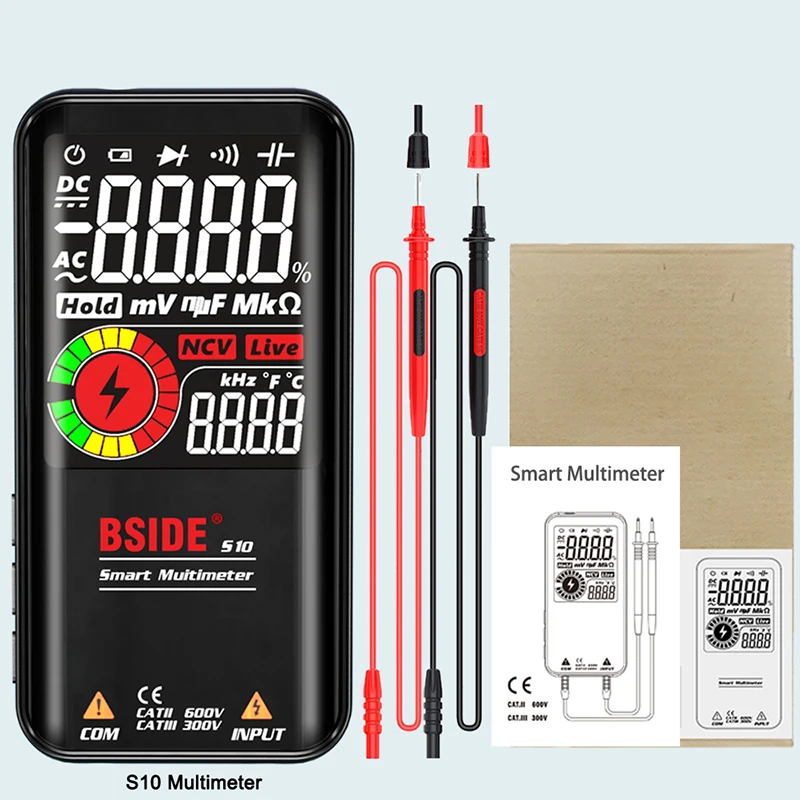 Цифровой мультиметр BSIDE EMF, детектор емкости, диодетер, Автоматический диапазон, вольтметр, цветной дисплей, 9999 отсчетов, можно заряжать