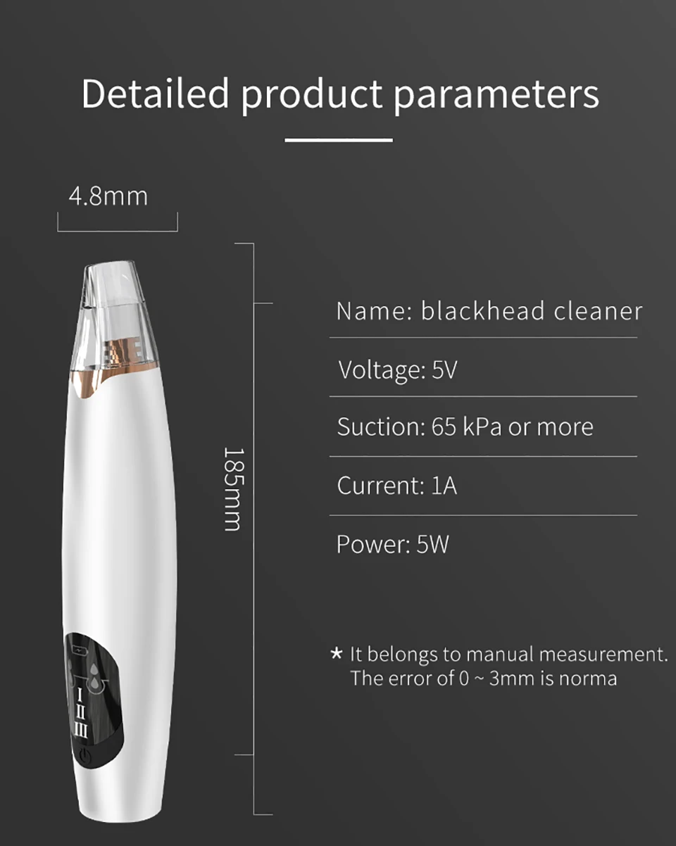 Овальная всасывающая головка: сила всасывания слаба для носовых паз и морщин в углу глаза, рта и других частей всасывания быстро оттягивается, И затем всасывание, а затем оттягивание, поэтому многократное использование