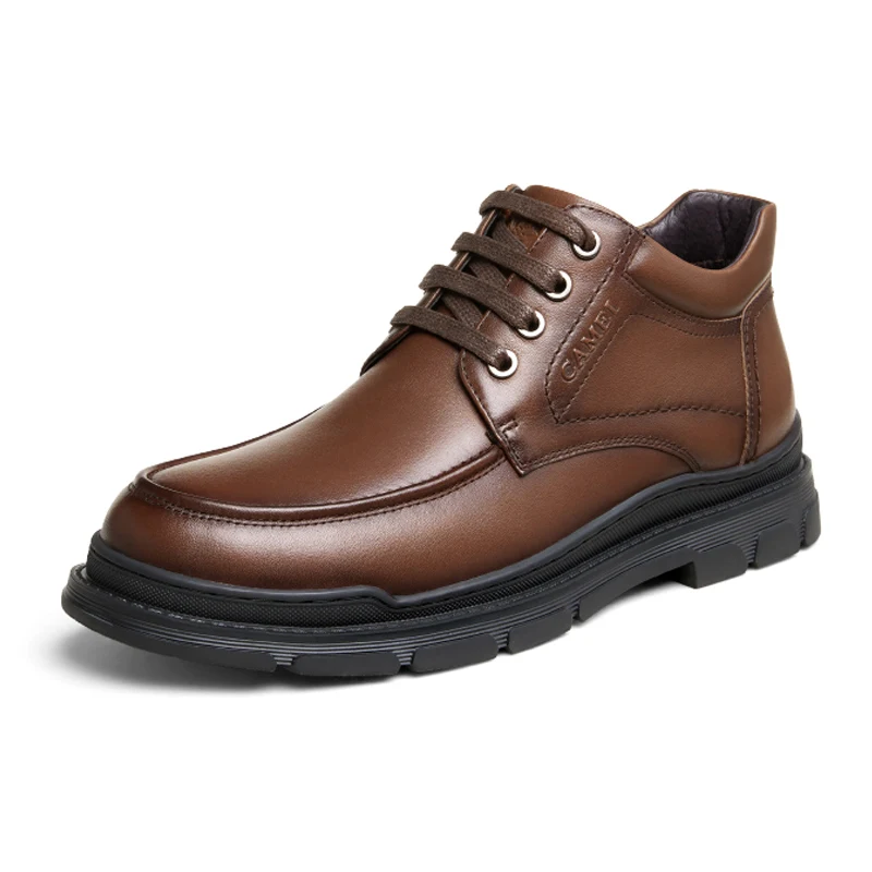 Мужские классические ботинки CAMEL, новинка зима 2021, бархатные теплые высокие ботинки, мужская деловая повседневная обувь из коровьей кожи, мужская обувь