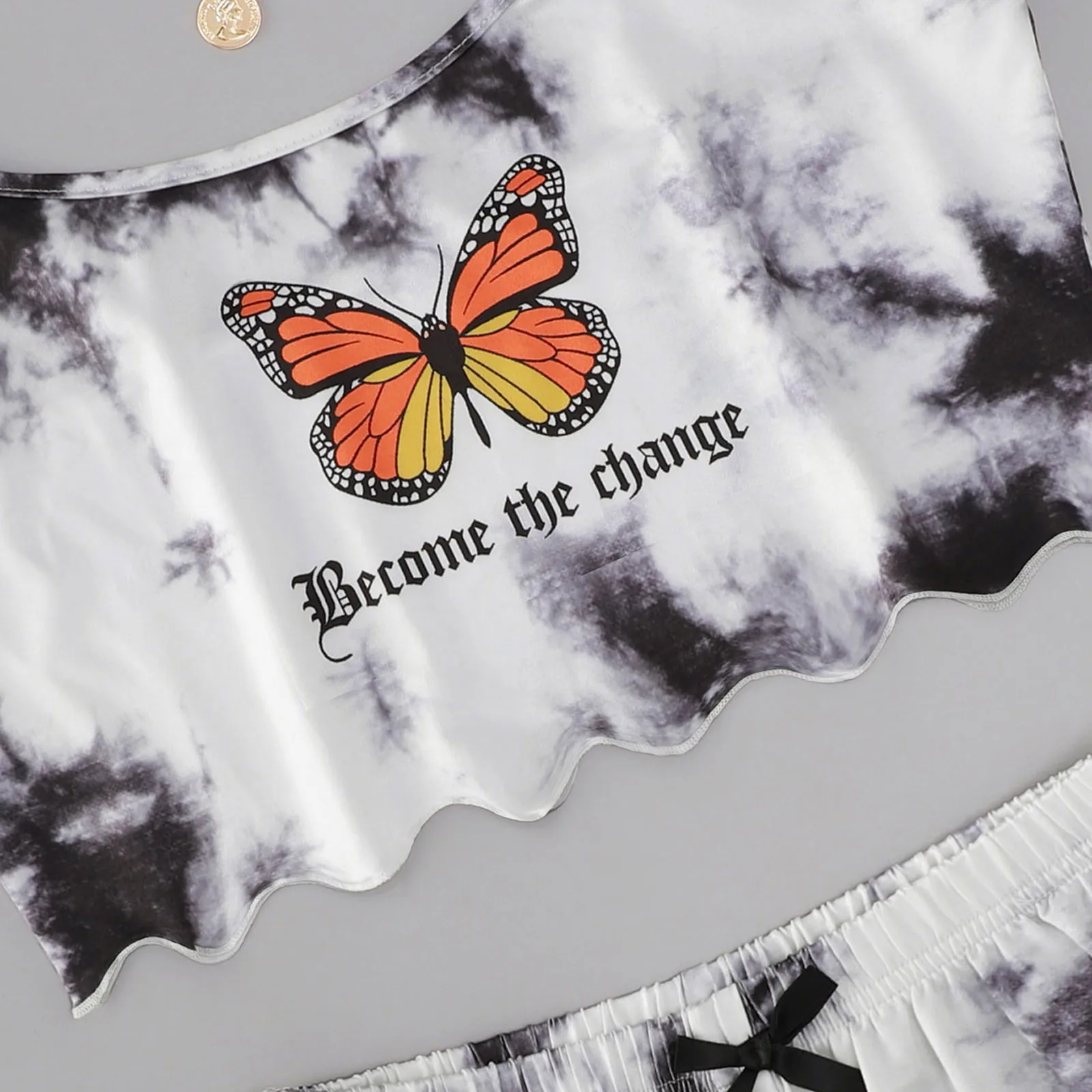 Пижамный комплект с принтом бабочки, летняя Пижама, пикантная Пижама, женский домашний костюм большого размера из 2 предметов, домашняя одежда, нижнее белье, пижамы, ночная рубашка