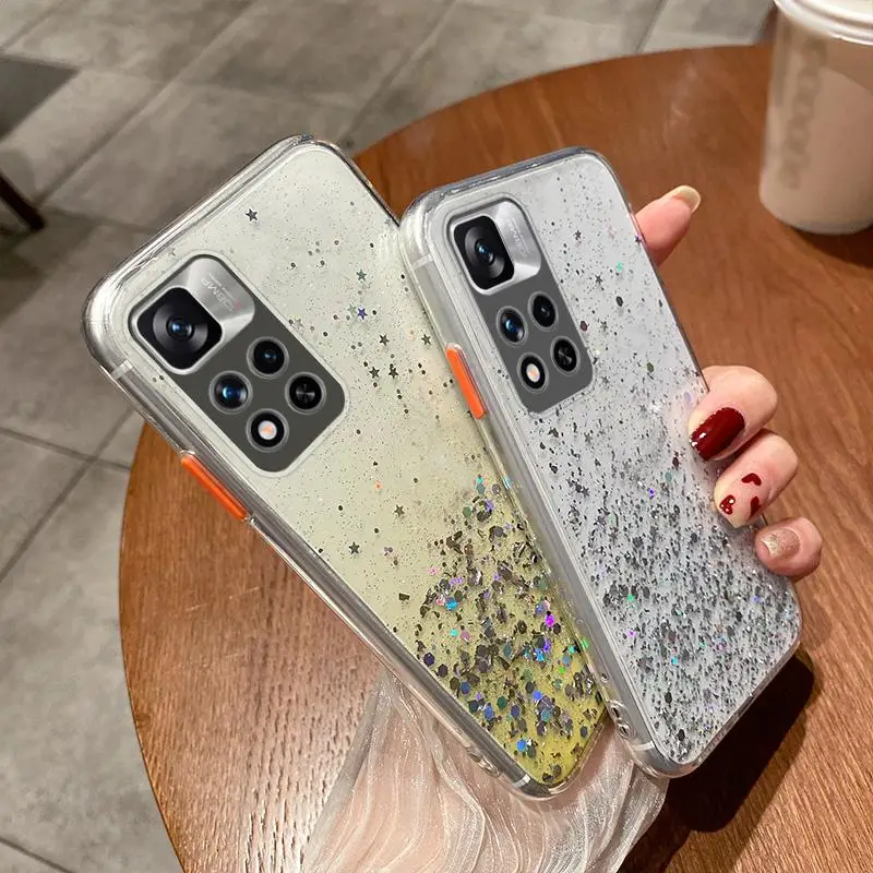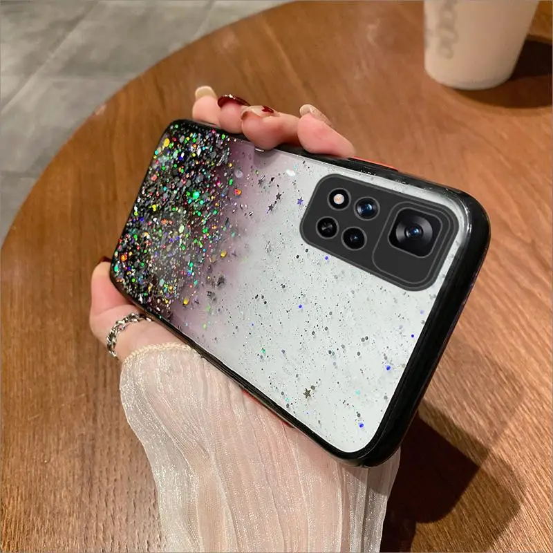 Чехол с градиентными блестками для Xiaomi Redmi Note 11 10 9 8 Pro Poco F3 X3 M3 M4 Pro Mi 11 Lite 5G NE, мягкий прозрачный чехол из эпоксидной смолы