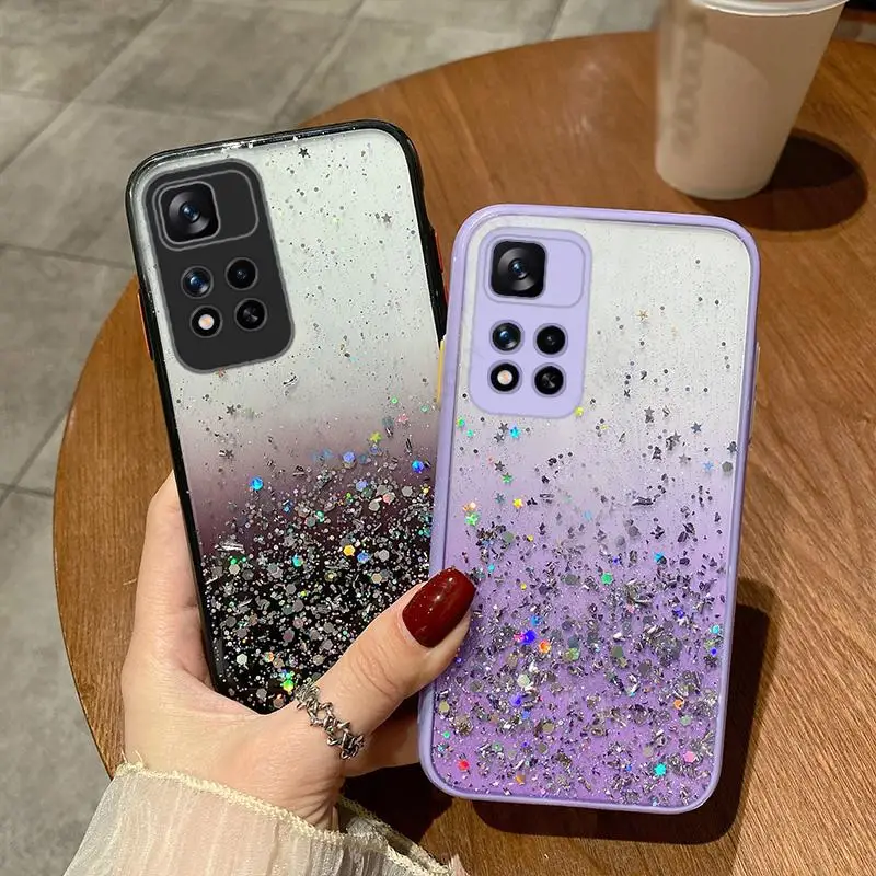 Градиентный блестящий чехол с блестками для Xiaomi Redmi Note 11 10 9 8 Pro Poco F3 X3 M3 M4 Pro Mi 11 Lite 5G NE мягкий эпоксидный прозрачный чехол