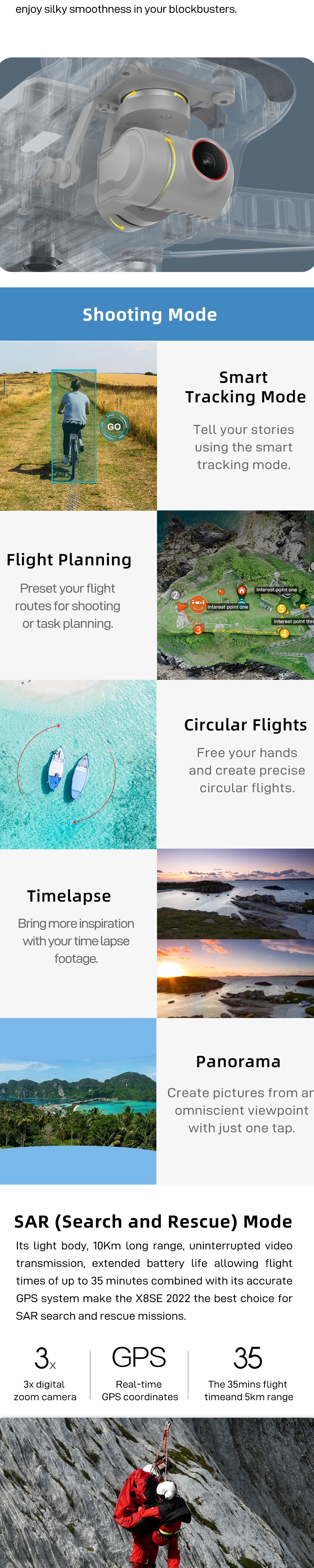 Квадрокоптер FIMI X8 SE, Радиоуправляемый квадрокоптер с 3-осевым шарниром, камерой 4 к