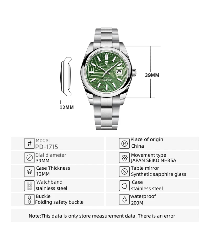 Новинка 2021, 39 мм, PAGANI DESIGN, мужские механические наручные часы с пальмовым листьем, мужские водонепроницаемые часы с сапфировым зеркалом NH35A 20 бар