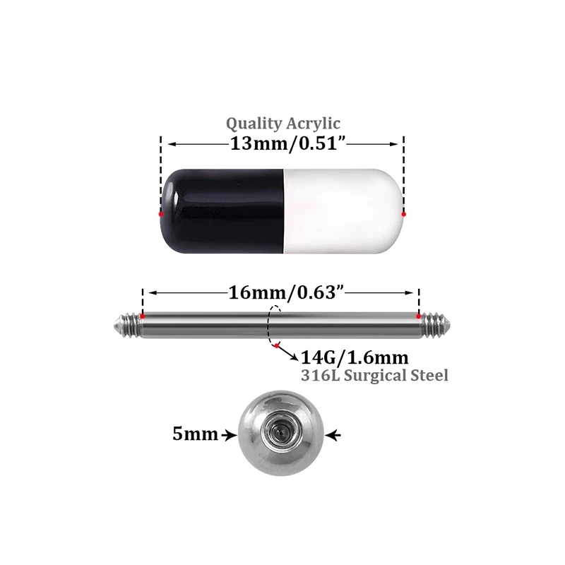 Кольца-гвоздики в виде капсулы для пирсинга языка из акрила, Ювелир...
