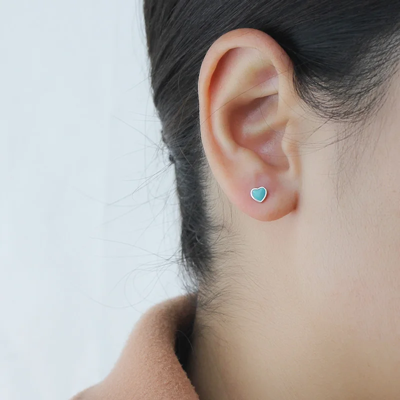 Женские серьги-гвоздики из серебра 925 пробы с сердцем