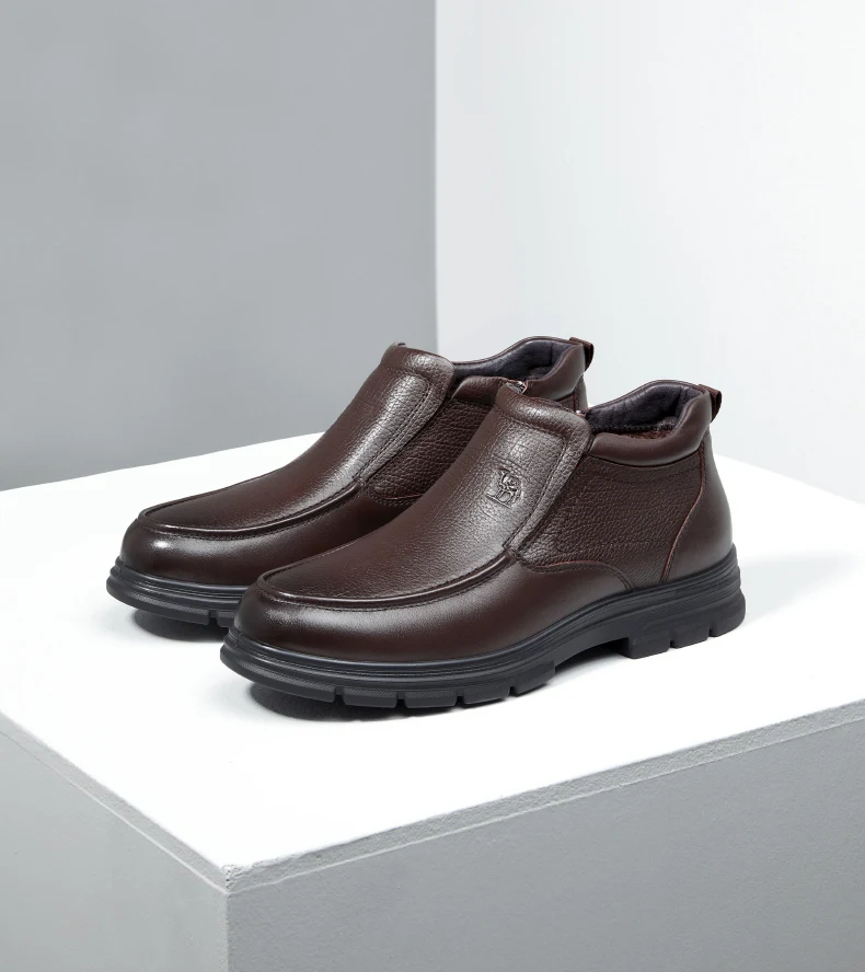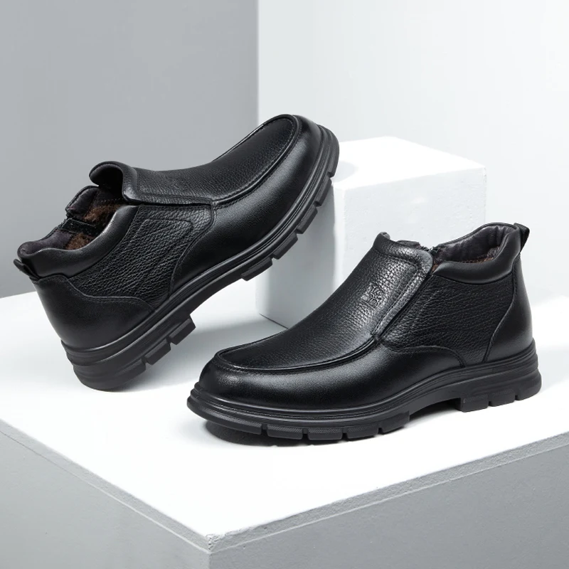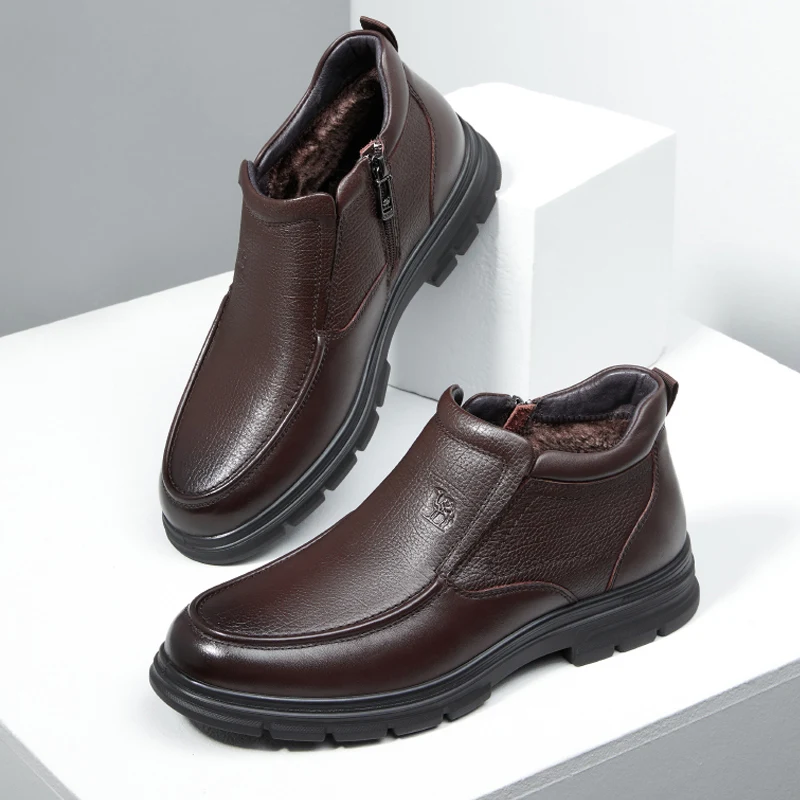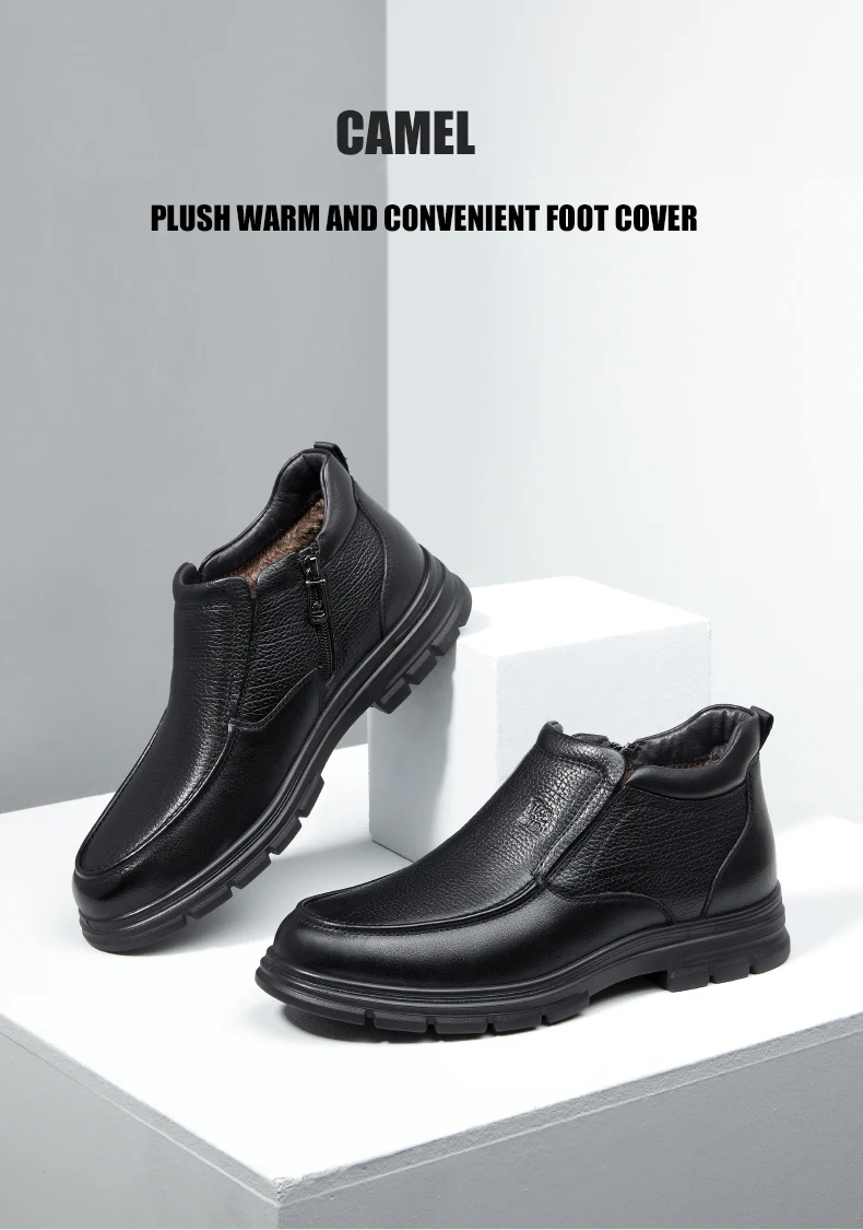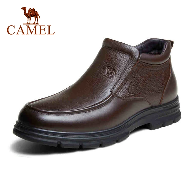 Мужские ботинки CAMEL, новинка зимы 2021, бархатные теплые деловые кожаные ботинки, кожаные мужские ботинки с высоким верхом на молнии в британском стиле