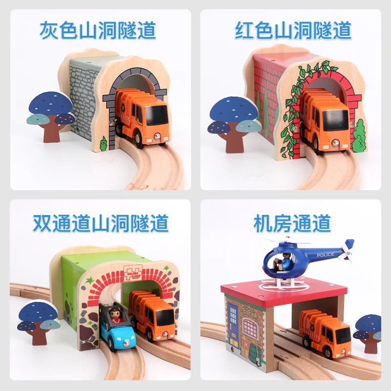 Деревянная железная дорога, деревянный трек, аксессуары, пещера, туннель, парковочная станция, подходит для всех брендов, развивающие игрушки для детей, подарки