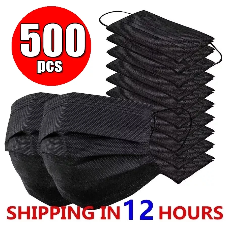 10-500 шт., одноразовые черные маски для лица, 3 слоя