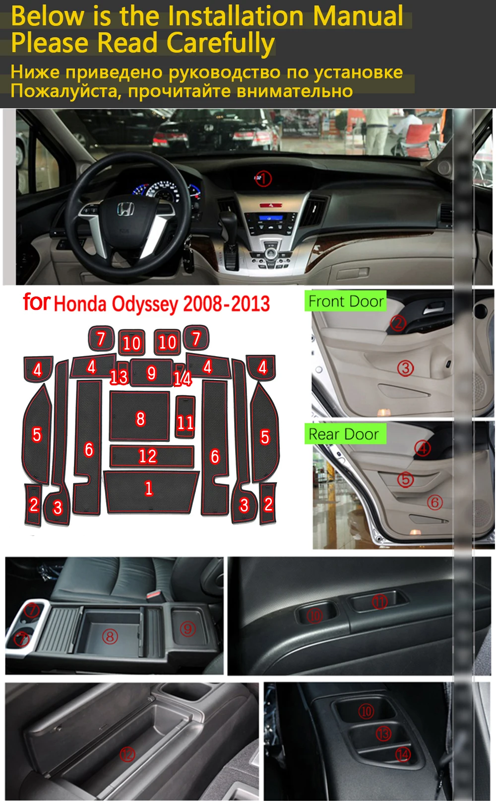 Для Honda Odyssey Jepan JDM модель RB3 RB4 2009-2013 резиновый противоскользящий коврик для двери, паз, подстаканник, слот для ворот, автомобильные аксессуары