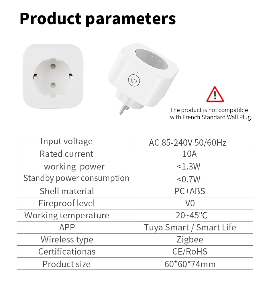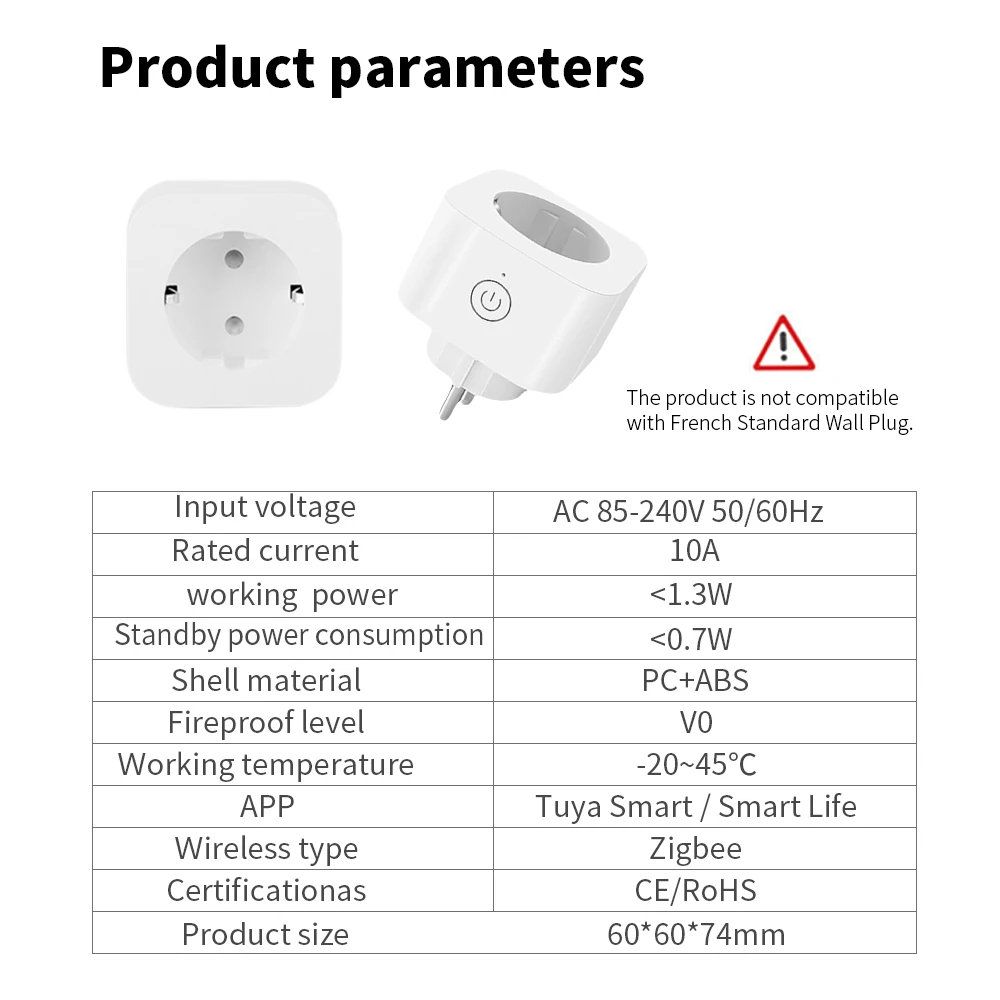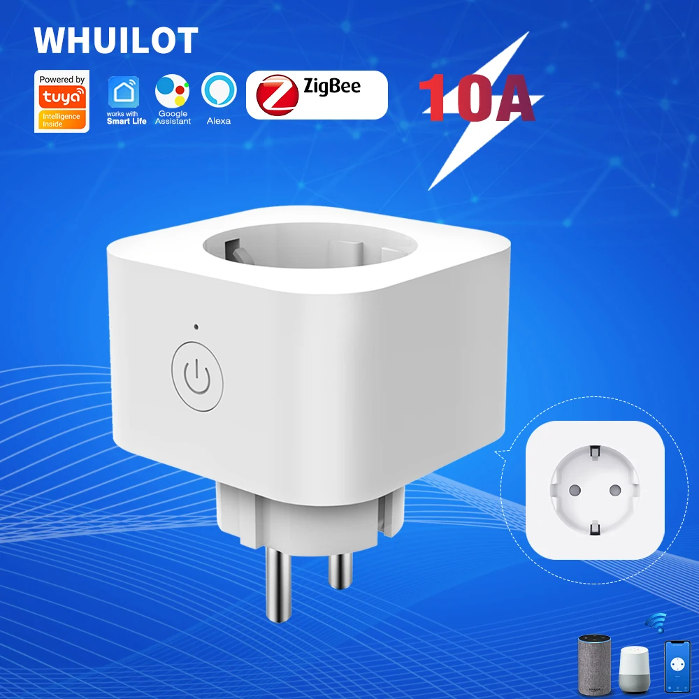 Умная розетка WHUILOT с вилкой европейского стандарта, 10 А, Zigbee 3,0, таймер автоматизации умного дома, Электронная розетка с поддержкой Google Home Alexa