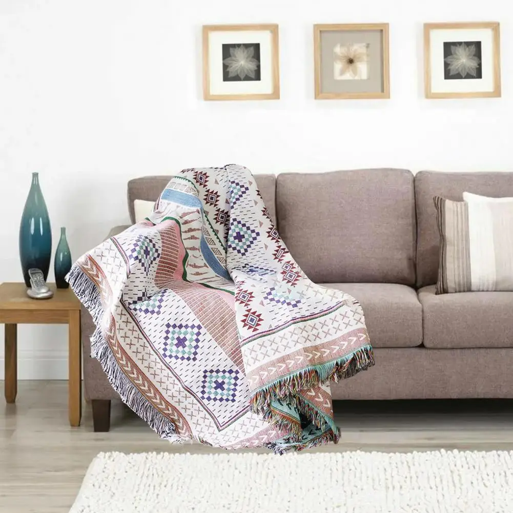 Богемное покрывало для дивана, вязаное одеяло с кисточками для кушетки, двустороннее покрывало с геометрическим узором, мягкая мебель