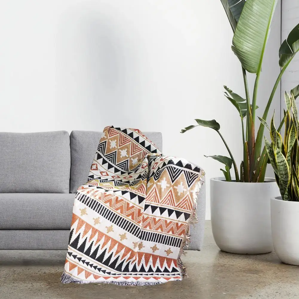 Плед в стиле бохо, трикотажное одеяло для дивана, двухстороннее, мягкое удобное декоративное покрывало